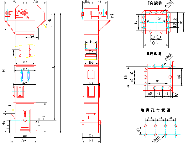 TD系列斗式提升機外形示意圖: