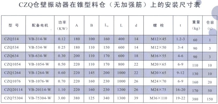 CZQ倉壁振動器是一種以振動電機為激振源的一種新型防閉塞裝置,將該裝置安裝于各種料倉上,通過振動可使料倉中結拱的物料發生變位運動,從而起到解拱作用。