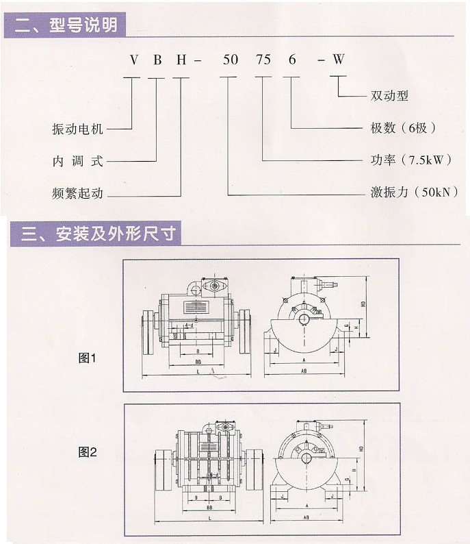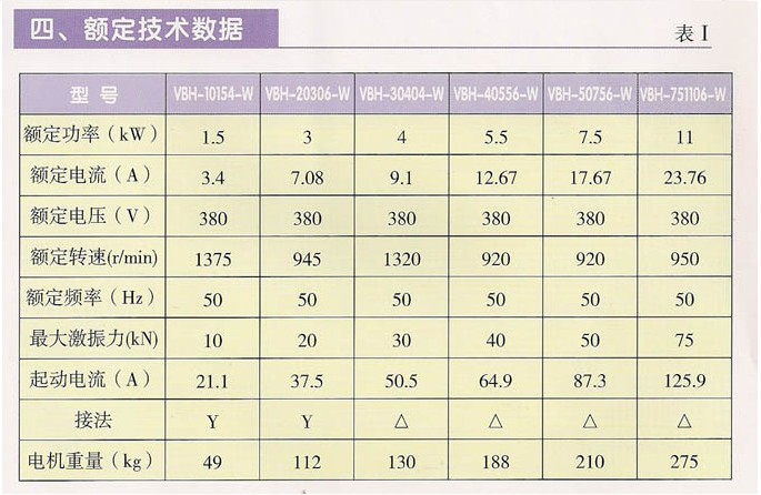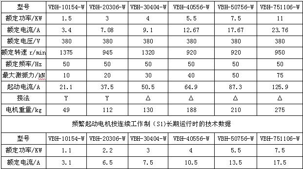 VBH系列頻繁起動振動電機,功率1.5~11KW,4、6極,激振力為10~75KN,共計6個規格。