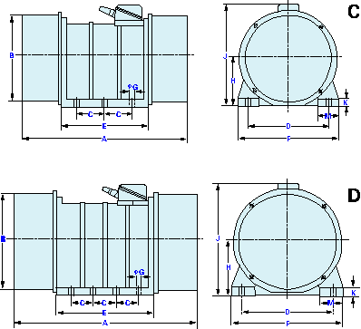 型號 | 振次r.p.m | 激振力 | 功率 | 電流 | 功率因數(shù) | 效率 | 起動電流倍數(shù) | 重量 | 圖號 | 外型及安裝尺寸 (mm) | 緊固螺栓 | ||||||||||