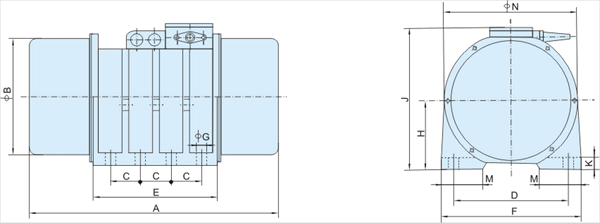XVM-A系列振動電機是在雙軸伸的轉子軸兩端各安裝一組可調偏心塊,利用偏心塊旋轉產生的離心力得到激振力。振動電機的激振力大、能耗小、噪聲低、壽命長。它使用于料倉、料斗、溜槽的倉壁振動,還是自同步直線振動篩、振動給料機、振動輸送機等各種振動機械的激振源,是冶金、礦山、煤炭、建材、化工等部門的理想設備,振動篩有廣泛的應用范圍。