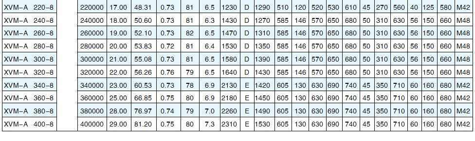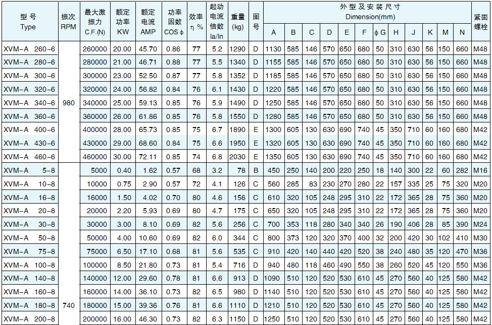 XVM-A系列振動電機相關技術參數: