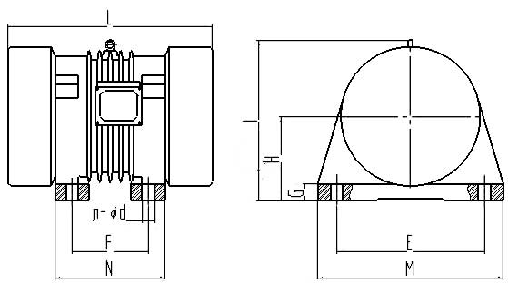 型號 | 激振(KN) | 功率(kw) | 電流(A) | 振頻(r/min) | 安裝尺寸(mm) | 外形尺寸(mm) | 重量(Kg) | ||||||||