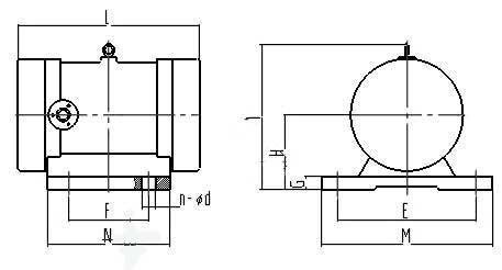 型號 | 激振力(KN) | 功率(kw) | 電流(A) | 振頻(r/min) | 安裝尺寸(mm) | 外形尺寸(mm) | 重量(Kg) | ||||||||