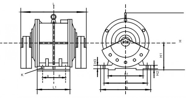 軸向a | 橫向b | 安裝孔k | B | b1 | L | L1 | H | H1 | H2 | H3 | ||||||