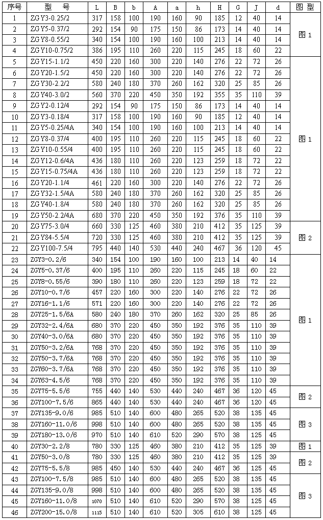 *注:1. ZGY系列電機外殼顏色為國際通用安全警告色,如客戶需要可另作說明。