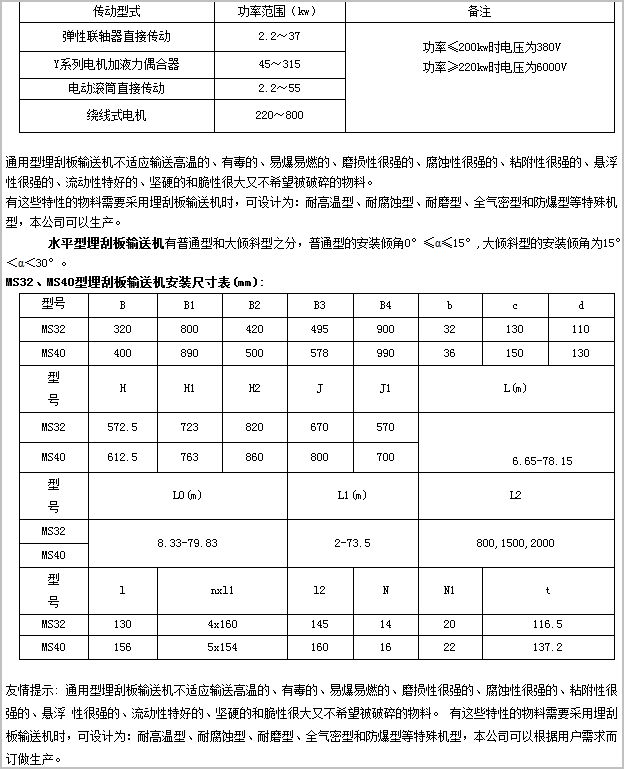 MS型埋刮板輸送機可輸送的物料舉例:煤粉、碎煤、煙灰、碳黑、碳酸氫銨、硫鐵礦粉、氯化銨、銅精礦粉、氧化鋁粉、石膏粉、石灰石粉、蘇打粉、尿素、活性碳、氯化鈉、硅酸鈣、石棉粉、合成樹脂、橡膠粉、電石、陶土、合成肥料、粉粒狀農藥、硫酸鋇、硫銨、純堿、粉粒狀醫藥、小麥、大豆、大米、糖、淀粉、碎木碳、木片、鋸末、聚乙烯醇合成洗滌劑、飛灰磷肥等等。